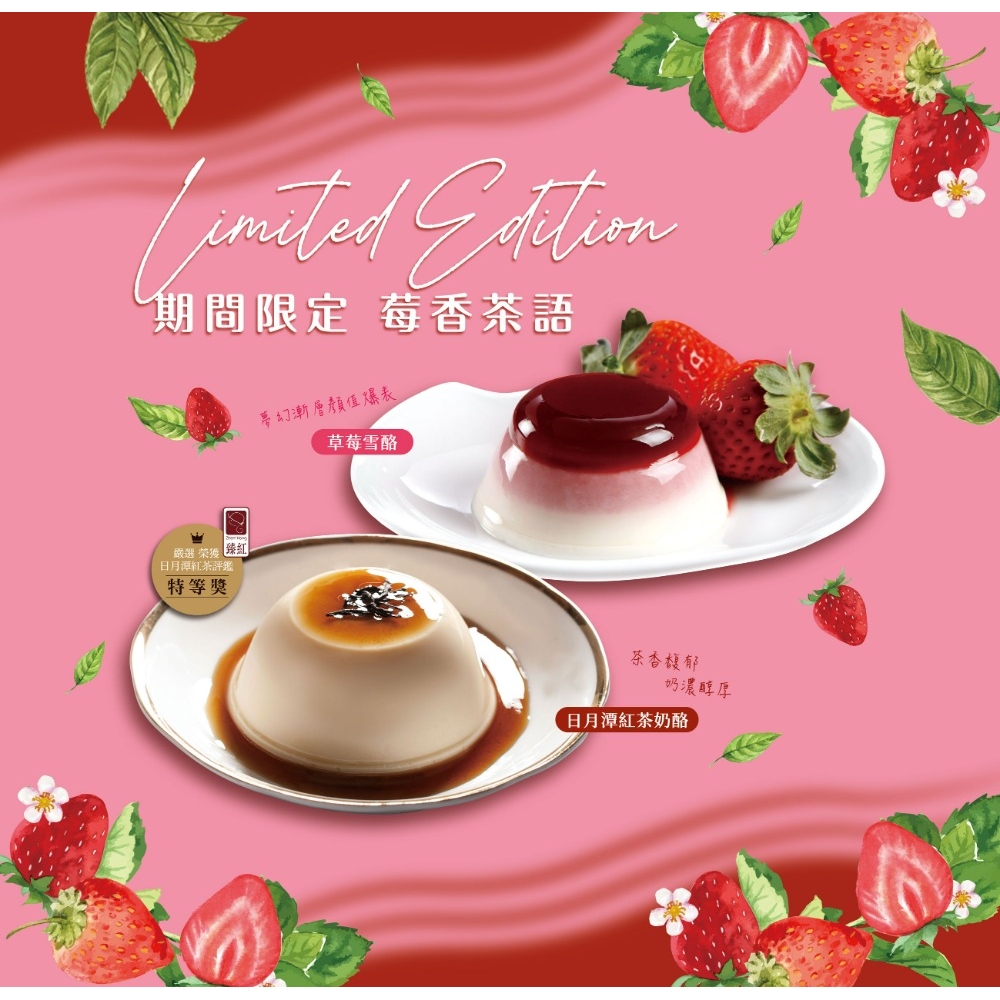 季節限定_草莓紅了-莓香茶語禮盒(日月潭頂級紅茶奶酪+草莓雪酪各3入)