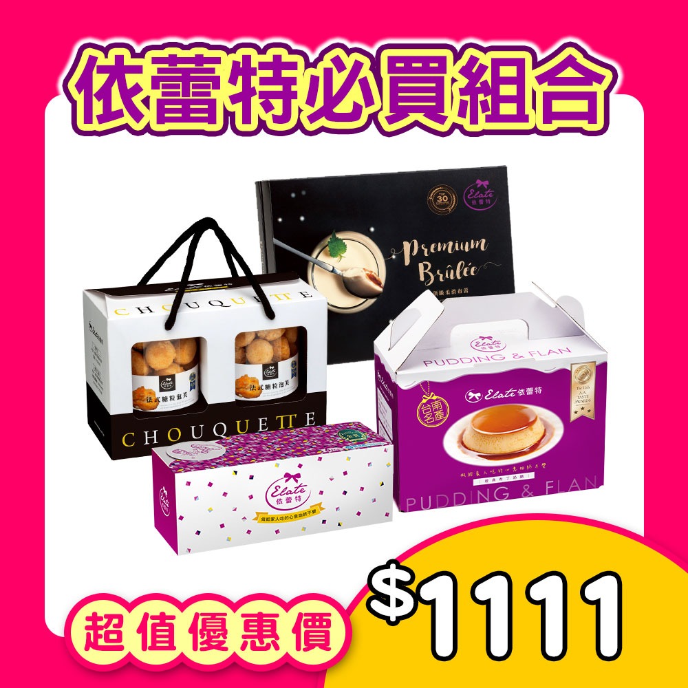 2025甜點優惠回饋祭限定__依蕾特必吃得獎組合:經典布丁奶酪8入*1盒+頂級焦糖柔滑布蕾6入*1盒+蜂蜜檸檬凝凍6入*1盒+法式糖粒泡芙2罐*1盒/組